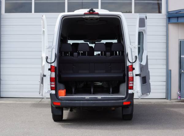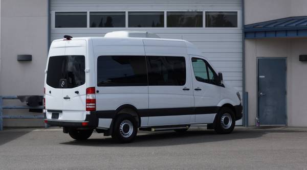 This is a nice sprinter passenger van that's in great shape inside and out. These high roof sprinters are awesome people haulers that allow full size adults to stand upright without hitting their heads and still provide enough personal space for everyone on board. The 3.0 liter 6 cylinder diesel engine is well known for it's longevity, reliability, and fuel efficiency. Additionally the sprinter is often rated the best driving experience with Mercedes build quality and attention to detail. The 144" wheelbase length van still allows for space behind the rear seats for luggage or cargo and it's short enough to fit inside a standard parking stall. This one has just been inspected and serviced and it's ready to hit the road. Call or e-mail with any question or to schedule a viewing appointment. See all our vans at rainiertruck .com