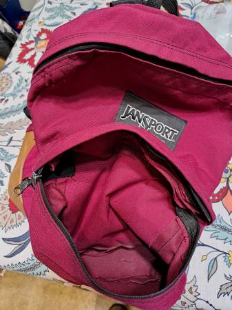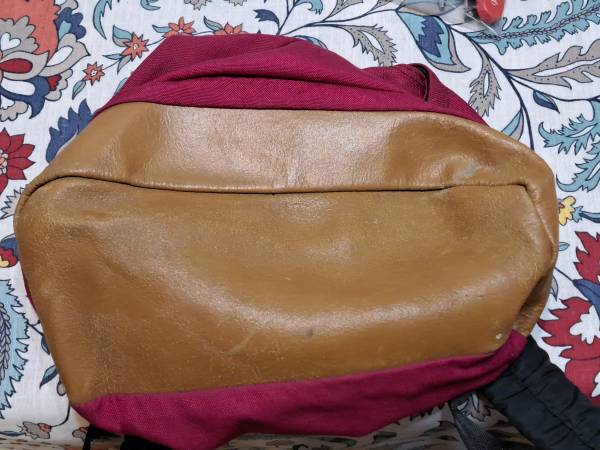 Vintage Jansport suede leather bottom backpack book bag. Burgundy color. Made in USA