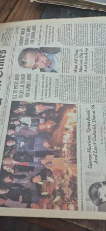 4 new york times newspaper on the death of George Harrison in good condition selling $40 for all 4 as a lot let me know if you're interested