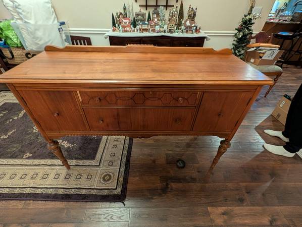 Both Solid Wood. Veneer chipping a bit on the table and sideboard. See pictures.