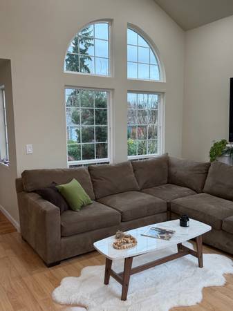 Axis Sectional Sofa – Good condition Originally $5,000+ Beautiful brown microfiber sectional in great condition. Super comfortable and plush — perfect for any living room setup. ✔️ All cushions...