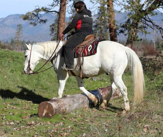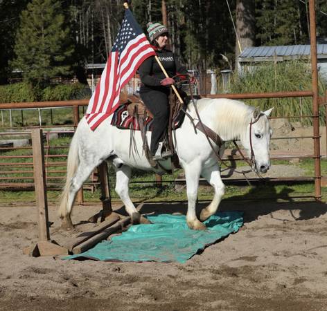 Polar is an 8-year-old, 15-hand PercheronβQuarter Horse gelding. He is a seasoned trail horse that excels in the mountainsβsure-footed over logs, through water, across bridges, and in rocky terrain.