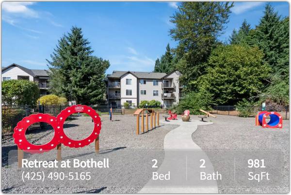 With a wide array of upscale finishes and in-home conveniences, our contemporary one, two, and three bedroom apartments at The Retreat at Bothell are designed so you can have it all. Featuring everything from trendy vaulted ceilings to rich hardwood floors, our luxurious living spaces level up your lifestyle in a snap. Cooking gourmet meals just got easier with your modern kitchen with an appliance package. Kick back in comfort on your private patio or balcony. Plus, let other modern features like an in-home washer and dryer set make your day to day easier to manage.
