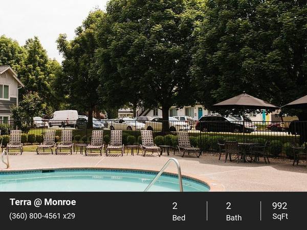 Terra @ Monroe is conveniently located in the center of Monroe, close to dining, shopping and the charm of small town living. A short drive puts you at Stevens Pass or at work in Redmond, Everett, Woodinville, and Bellevue. Our apartment communities feature great amenities: beautiful landscaping, indoor basketball court, fitness center and the only swimming pool in town.