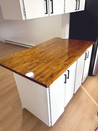 Inside, you'll find modern living at its finest. The home features new wooden countertops, as well as a brand-new in-unit laundry conveniently located upstairs next to the bedrooms and bathroom, guaranteed resident parking, and stylish interiors that balance character with contemporary updates. Hardwood-style LVP flooring flows throughout the downstairs, complementing the restored kitchen cabinetry with updated hardware, an upgraded kitchen faucet and new butcher block counters. The bathroom includes a restored vanity and upgraded hardware for a fresh, polished look. Sliding glass doors open from the living room to a welcoming outdoor area, perfect for relaxing or enjoying the fresh air.