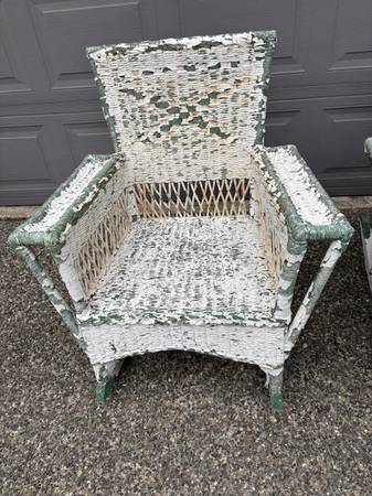 Set of two Wicker Rockers of Lloyd Loom construction and solid wood frame. Both are in good structural condition. Needs to be striped and repainted. measures 30" wide, 36" deep and 33" High. We price them at $95 for the pair. located in Mill Creek WA. if interested please contact me through Craigslist or call John at show contact info