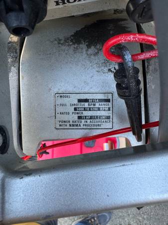 90s Honda outboard Runs great Fluids and spark plug just done at end of season 15hp Only issue is the tilt lever is broken. Still plan to get it fixed check in for updates 1200$ obo
