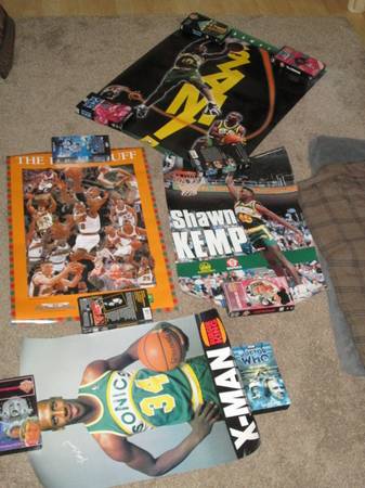 assortment of sonic memorabilia.. posters, cards(sonic cards and 90s BB cards) beer glass/coffee cup,