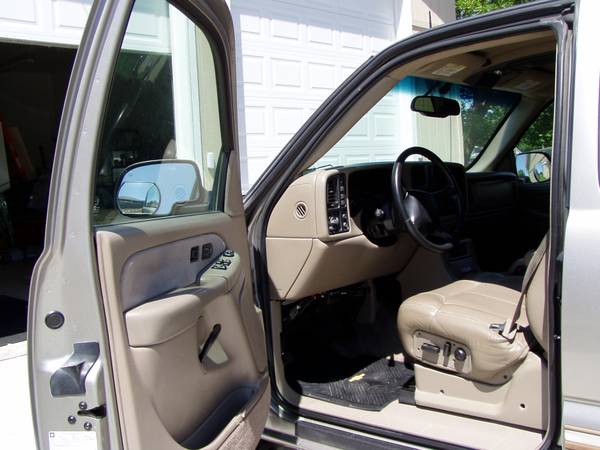 2002 Chevy Silverado 2500HD, Extended Cab, LT, 6.0 L 300Hp Gas Engine, 4x4, Light Pewter Metallic Factory Paint, Tan Leather Interior, Leather Wrapped Steering Wheel, 4-Speed HD Overdrive Hydra-Matic(4L80-E)Trans, PS, PB, Cruise, Heated Power Side Mirrors, Heated 8-Way Power Bucket Seats, Rear Window Defogger, Trailer Brake, Center Console, Overhead Console, Factory Trailer Pigtail(Never used), Stainless Side Rails, Alum. Factory Wheels, 10Ply LTX A/T Michelin Tires(60%Tread), Factory AM/FM Cassette CD Radio/Player, Auto Headlamps, Four Wheel Anti-Lock HD Disk Brakes, Remote Keyless Entry, Tow/Haul Trans. Mode, Payload=3,153 lbs, GVWR=9,200 lbs, Max. Ball Hitch Trailer Weight=12,000 lbs, New Rancho Shocks/Damper, New HD Slotted Brake Rotors/Pads, Optima Battery, 8'(Full Size) Bed, Factory GM Bed Rail/Tailgate Protectors, GM Sill Plate Protectors, New LED Lights Front and Back, Factory Outside Temp Mirror