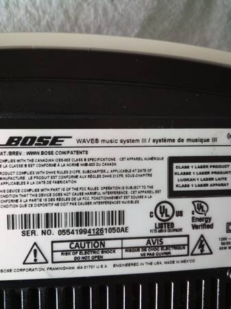 Bose 'Wave III' radio. Good condition. Radio, clock and alarm all work great, CD player works sporadically. Price reduced!!! Cash only, reply to post or text. Thank you