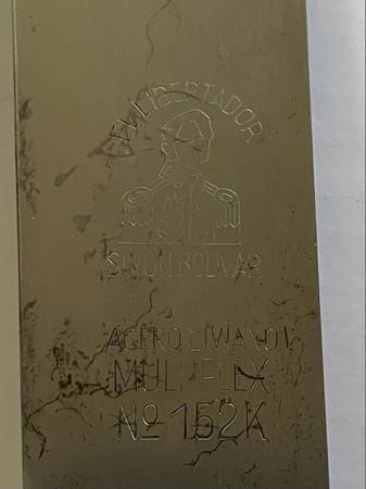 Vintage machete marked El Libertador Simon Bolivar Acero Mano Multiflex No. 152K.