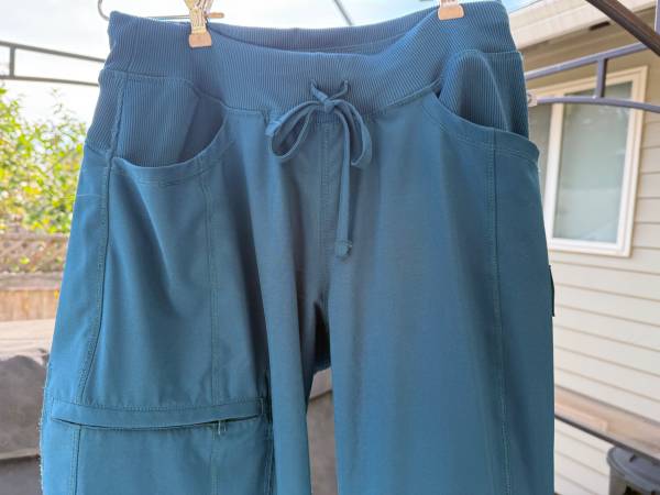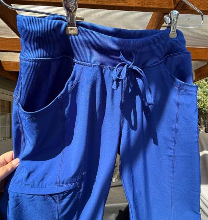 Only wore these petite size scrub pants maybe 6-7 times. I bought black and grey and seem to wear those colors more. These were $30.00 each, from Uniform Advantage. It has total of 4 pockets. Two front, 1 right thigh let mad 1 back right pocket.