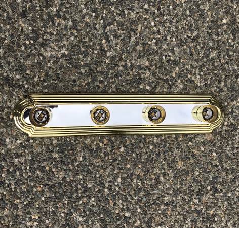 24” long x 5” wide x 2.25” deep Bright silver chrome and bright gold brass Takes up to 100 watt bulbs (4) Hollywood makeup light emits a large amount of light!