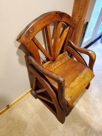 By definition of time owned, this bench and chair is vintage as we have owned these two for over 30 years. By definition of antique, these two are very old in the materials used to make them. They are both made of old ox carts that date back to the mid 1800's.