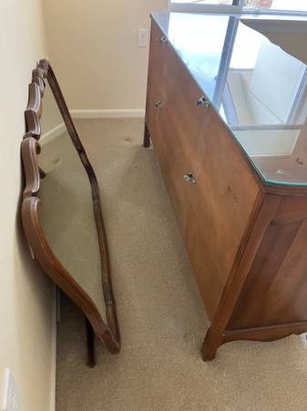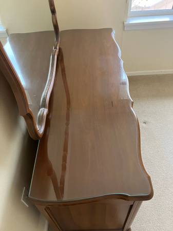 This GORGEOUS Vintage Style, French Provincial Wooden 9 Drawer Dresser w/ Mirror is in FANTASTIC Condition! VERY solid and sturdy! PERFECT for any home, bedroom, spare room, guest room, apartment or condo! This Chest of Drawers measures 34.5-67"t x 65"w x 21"d and features a custom cut glass top! This was a prized piece used in the guest room of Grandma's Bellevue condo. But now, due to downsizing, she has no room for it. Interested? Call Joe!