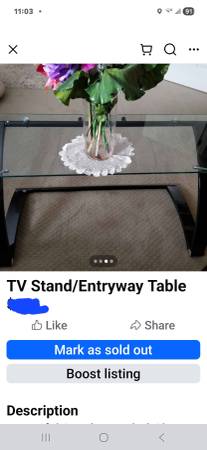 Brandnew Beautiful Sturdy TV Stand With Beveled Glasses Can cary 150 LBS. Perfect For Display Like Entryway Table. I paid 180 Asking 50 Cash Pick Up In Lakestevens