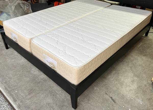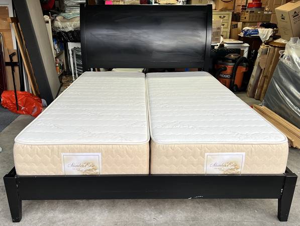 New Condition Slumber Ease Mattress Factory Split Queen Mattress. This Queen Split Mattress has been stored in the back of a Mattress Factory in plastic mattress bags. They are new and has never been in anyone's home. Each is 30 X 80 inches long, which is the size of a queen mattress. Mattresses are about 12 inches thick. Mattress is very comfortable with very good support. Mattress are spotless. No stains. No sagging. Easy to transport. Selling this pair for less then half the cost.