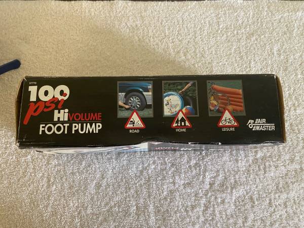 Air Master Foot Pump 100 PSI, Hi Volume Accurate, easy to read gauge. Extended Hose with quick release stem fitting Adapters not included. You pickup in Edmonds.