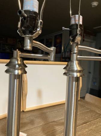 $30 for the set of 2 Silver Lamp Base Stand High Quality & Heavy Metal, Swing Arm 24 3/4 " Tall x 7" base across