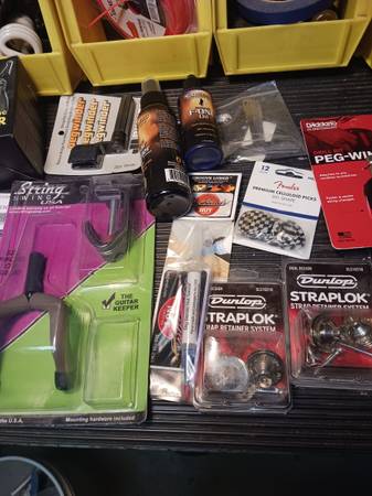 I have several guitar goodies. Donner 9 volt wall wart power supply with daisy chain cable, Dunlop strap locks ,tools, string winders, radius guages. Stomp box connectors and cables, Instrument cables, cleaners, string nut lube kit, etc. Text or email only please.