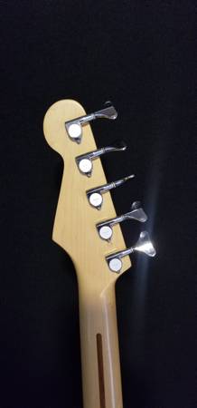 1990 Fender Jazz Plus 5 String Bass Guitar Made in USA. Recently setup with Fodera x DR Nickel E-C strings. Nut is stock and will accommodate B-G or E-C strings. Comes with Fender USA hard case and strap with strap locks.