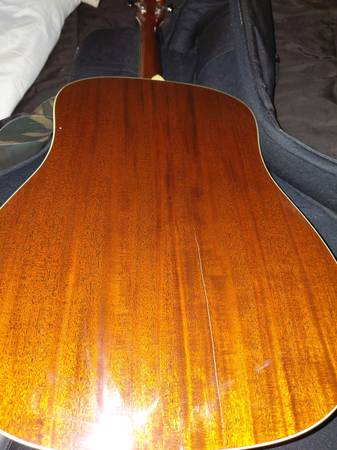 I've had this guitar up before but discovered a Crack down the back and had to re-examine the whole picture and sale. I apologize for inconveniences. Anyways it doesn't have electronics but can plug in to amps and play nicely with stock plug in and pickup it has. Its a nice guitar otherwise. If you are a skilled luthier this would be an easy and interesting project and can be in great shape overall. It plays so nicely you wouldn't know there was a Crack at all. I know this guitars worth so if you can handle my price than you can resell for double easily. So my price is 650.00 im looking to meet up locally and comes with a roadrunner case