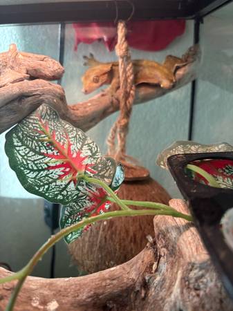 Looking to re-home our friendly Crested Gecko Spike. He is very gentle and hand tame. He loves crickets, small Dubai roaches and soft fruits. Spike loves to jump and he is extremely quick. He would be ideal to a first time pet parent since he is so hands on but would also need a pet parent that has general knowledge of his basic needs. Unfortunately we have had to make some changes in our lives and can’t give Spike the full attention he loves. We love him so we really need him to go to a really good pet parent. Spike will come with his tank set up, lights, spray bottle and food. His tank is vertical and has a front opening door. His light cycle requires them to be 12 hours on 12 hours off, also needs to have his tank sprayed first thing in the morning when his lights go on to keep the humidity and so he can drink. We do require a small rehoming fee to ensure Spike goes to a loving forever home.