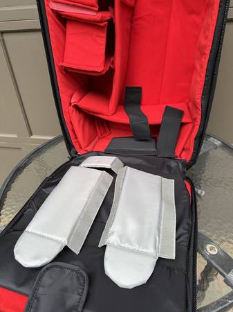Regulations Front lid unzips quickly to reveal central compartment contoured to comfortably fit up to two DSLR cameras with lens attached
