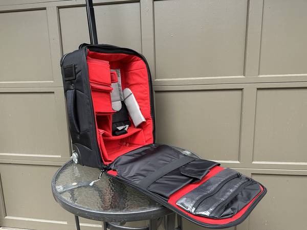 For sale is a Petrol PD620 Rolling DigiSuite DSLR Camera Case. This case is in very good condition. It is very clean. There is some wear on the plastic wheels, but everything else looks like it is new. Includes several dividers so you can set the inside up to work with your equipment. The handle can retract into two different positions, or it can be completely hidden.