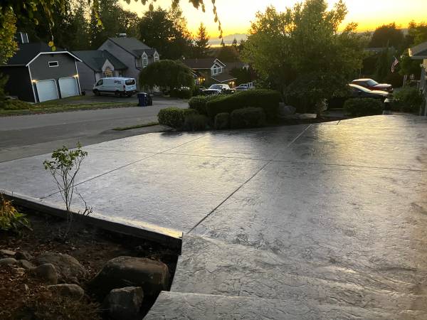 We specialize in driveways, patios, walkways, steps, retaining walls, Simple brushed finish, stamped, exposed aggregate.