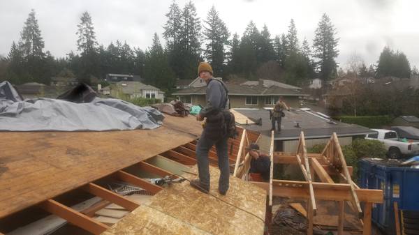 Typical, about half our projects are building a weathered-in-shell for the General Contractor (or the homeowner). Such as; selective demolition, setting the foundation, framing, roofing and siding. Often times we'll work alongside their crews as their specialist(s) to handle the structural/framing and other tasks.