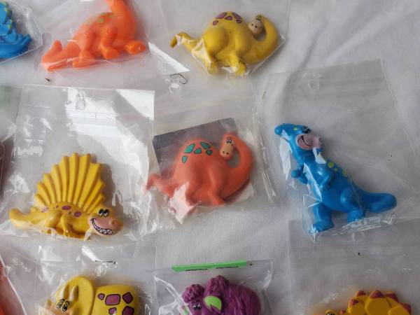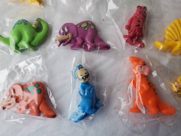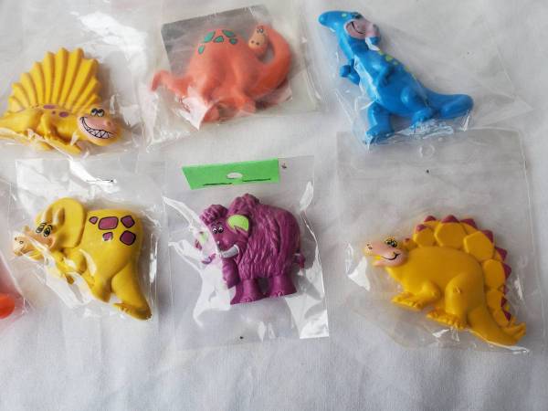 1990s Post Cereal Flintstones Fruity Pebbles Cereals Dinosaur and Fred Prize Toy Figures