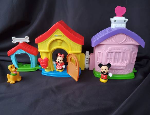 Includes: Play house with Plutos Dog house ,Mickey Mouse, Minnie Mouse and Pluto figures