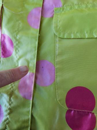 OshKosh Polka Dot Hooded Rain Coat Girls Size 4 Small Jacket has attached lined hood 2 front pockets Logo on the sleeve Great Jacket it does have a ink mark and some discoloring shown in pictures $5