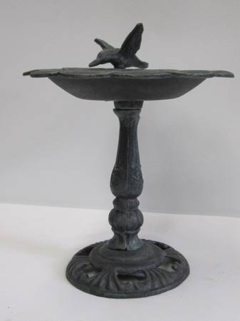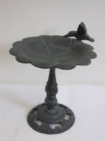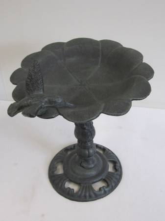 Cast Iron Bird Bath Adorned with Hummingbird Accent New Unused Indoor or Outdoor for Deck, Porch, Garden, or Yard 11"Tall x 10-1/2"Wide