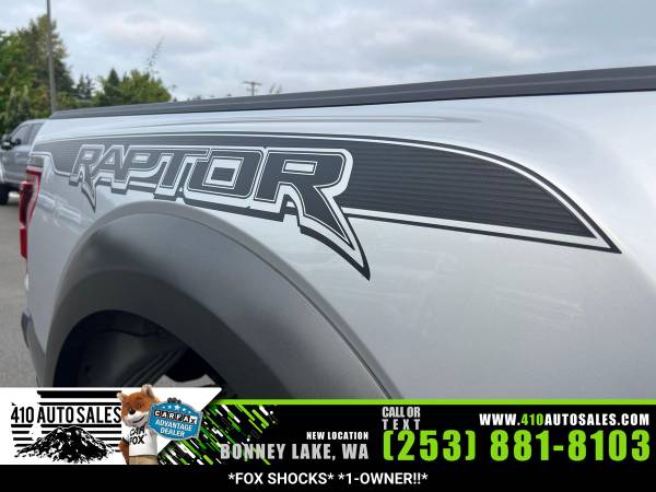 This 1-OWNER 2019 Ford F-150 Raptor SuperCrew is a high-performance, off-road-ready pickup that blends rugged capability with cutting-edge technology and exceptional comfort. Equipped with the sought-after Equipment Group 802A and Raptor Technology Package, this truck boasts features like Adaptive Cruise Control, Lane Keep Assist, Blind Spot Information System with Cross-Traffic Alert, and a 360-Degree Camera for added confidence on any journey. The Raptor's enhanced off-road performance comes courtesy of Fox Shocks along with the 4.10 Electronic Locking Axle Ratio, 4.10 Front Axle with Torsen Differential, and forged aluminum bead-lock capable wheels. With a powerful engine and advanced trail-ready features like the Pro Trailer Backup Assist and Integrated Trailer Brake Controller, the Raptor is built for serious adventure and work capability alike.