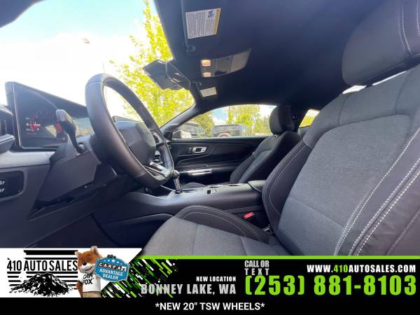 * Active Belts                                                            * Air Conditioning    * Anti-lock Brakes                                                     * Auto-Reverse System for Windows and Sunroofs    * Backup Camera                                                     * Blind Spot Warning (BSW)    * Crash Imminent Braking (CIB)                                * Daytime Running Light (DRL)    * Daytime Running Lights                                         * Dual Air Bags Front and Sides    * Dynamic Brake Support (DBS)                               * Electronic Stability Control (ESC)    * Forward Collision Warning (FCW)                          * Immobilizer / keyless entry / and alarm    * Keyless Ignition                                                       * Lane Departure Warning (LDW)    * Lane Keeping Assistance (LKA)                            * Pedestrian Automatic Emergency Braking (PAEB)    * Power Brakes                                                          * Power Steering    * Power Windows                                                      * Rear Automatic Emergency Braking    * Rear Cross Traffic Alert                                         * Semiautomatic Headlamp Beam Switching    * Tilt Steering Wheel                                                 * Traction Control    * Turbocharger Ford Mustang EcoBoost 2402,1fa6p8th2r5115470,410 auto sales,ecoboost 2.3l turbo i4 315hp 350ft. lbs.,2024 ford mustang ecoboost *new wheels & tires*,used vehicles,used coupe,410 auto sales,bonney lake,wa,ford,mustang,ecoboost,coupe,gas,black exterior,black interior,cloth,cloth interior,automatic,automatic ford,automatic ford mustang,10 speed speed,rwd,2 doors,2 drs,two doors,4 seats,four seatsPowered by autoZnetwork.com