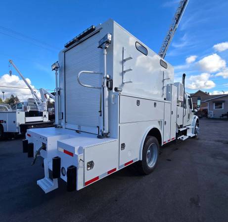 2014 FREIGHTLINER M2 CREW CAB SERVICE TRUCK****ONE OWNER****LOW MILES ONLY 46K****6.7 CUMMINS MOTOR***AUTOMATIC****AIRWORKS TWISTER AIR COMPRESSOR 100 CFM AT 185 PSI****WITH 6K GENERATOR AND HYDRAULIC PUMP FOR HYDRAULIC TOOLS****1/2 INCH AIRLINE HOSE REEL WITH QUICK CONNECT****10 STORAGE COMPARTMENTS***ROLL UP DOOR****TOW PACKAGE****AIR BRAKES***POWER INVERTER****SIDE STEPS****FRONT LIGHT BAR****REAR WORK LIGHTS****SAFETY CONE HOLDER****REARVIEW CAMERA***POWER WINDOWS****POWER AND HEATED MIRRORS****SPRING SUSPENSION****NON CDL****TIRES 255/70R22.5****REMOVABLE TRI-POD WORK LIGHTS!!!!