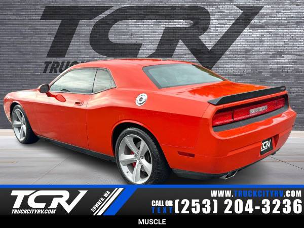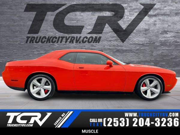🔥 FOR SALE: 2008 Dodge Challenger SRT8 – 63,795 Miles 🔥Location: Truck City RV SalesExterior: HEMI Orange Pearl Coat w/ Black Racing StripesInterior: Dark Slate Gray Performance SeatsTransmission: 5-Speed AutomaticEngine: 6.1L HEMI V8 – 425 HP / 420 lb-ftVehicle Specs & FeaturesPowertrain & Performance6.1L SRT HEMI V8 (425 horsepower)5-speed automatic w/ AutoStick manual shift modeRear-wheel drive3.06 rear axle ratioSRT performance suspensionBrembo 4-piston performance brakesSport-tuned exhaust0–60 mph in approx. 4.9 secondsLimited production first-year modelExteriorHEMI Orange Pearl Coat (SRT8 exclusive launch color)Black dual racing stripes20" forged SRT aluminum wheelsFunctional hood scoopRear decklid spoilerHID headlights (if equipped)Fog lampsInteriorPremium performance bucket seats w/ suede insertsSRT embroidered seat backsLeather-wrapped steering wheelPower driver seatDual-zone automatic climate controlHeated front seatsAluminum interior trim accentsTechnology & ConvenienceKeyless Go (push-button start)Navigation radio (if equipped)Boston Acoustics premium audio systemAM/FM/CD/MP3 w/ subwooferSteering-wheel audio controlsCruise controlPower windows & locksTire pressure monitoring systemSafetyFront and side-curtain airbagsElectronic Stability ProgramTraction controlAnti-lock 4-wheel disc brakesThis first-year SRT8 is a modern muscle collectible—clean, powerful, and well cared for.📞 Contact Truck City RV Sales for pricing, financing options, or to schedule a test drive!