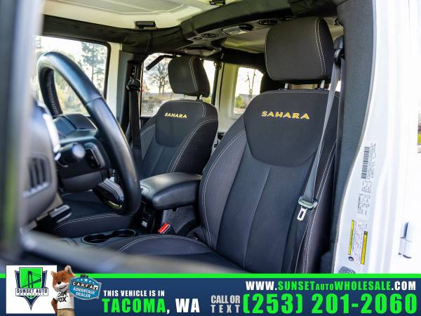2014 Jeep Wrangler Unlimited Sahara for Sale – Well-Maintained Local Trade-InThis 2014 Jeep Wrangler Unlimited Sahara is a local trade-in with an excellent service history and a standout ownership story. The previous owner cared for this Wrangler meticulously and ultimately traded it in for a 2025 Jeep Gladiator Mojave, choosing to stay within the Jeep brand rather than part ways due to condition or reliability concerns.That history matters. A vehicle owned by someone who genuinely valued it often shows better long-term reliability, cleaner ownership records, and more consistent maintenance — and this Wrangler reflects that care throughout.The Unlimited Sahara trim is one of the most sought-after Wrangler configurations, offering the classic open-air Jeep experience with added comfort, convenience, and everyday drivability. With four doors and ample interior space, this Wrangler works just as well as a daily driver as it does for weekend adventures.Performance & DrivetrainUnder the hood, this Wrangler is powered by Jeep’s proven 3.6L V6 engine, paired with a 5-speed automatic transmission and a part-time four-wheel-drive system. This setup delivers reliable power on the highway while retaining the off-road capability Wrangler owners expect.A manual transfer case, limited-slip differential, skid plates, and heavy-duty suspension make this Sahara well-equipped for snow, gravel roads, trails, or backcountry exploring, while remaining comfortable and composed on pavement.Interior Comfort & TechnologyInside, the Wrangler Unlimited Sahara balances rugged design with everyday comfort. The cabin features cloth bucket seats, a leather-wrapped steering wheel, air conditioning, cruise control, and a premium sound system with steering-wheel-mounted audio controls. Practical storage solutions, multiple 12-volt power outlets, and a trip computer add convenience for longer drives and road trips.The rear pass-through bench seat allows for flexible cargo and passenger configurations, making this Wrangler easy to live with year-round.Exterior FeaturesFinished in Bright White Clearcoat, this Wrangler Sahara features the iconic Jeep look with functional upgrades. Highlights include aluminum wheels, a full-size spare, privacy glass, running boards, and a removable hardtop with Freedom Panels, giving you the choice between full enclosure or open-air driving depending on the season.Safety & Ownership ConfidenceSafety features include stability control, traction control, tire pressure monitoring, multiple airbags, and side-impact protection. Combined with its documented ownership history, this Wrangler offers peace of mind alongside its legendary capability.Why This Wrangler Is Worth Your AttentionIf you’re searching for a 2014 Jeep Wrangler Unlimited Sahara for sale with a strong service history, responsible prior ownership, and the right balance of comfort and off-road readiness, this example stands out from typical auction or high-turnover inventory.This is a Wrangler that was owned, not just driven — and it shows.Contact us today to learn more or schedule a test drive.
