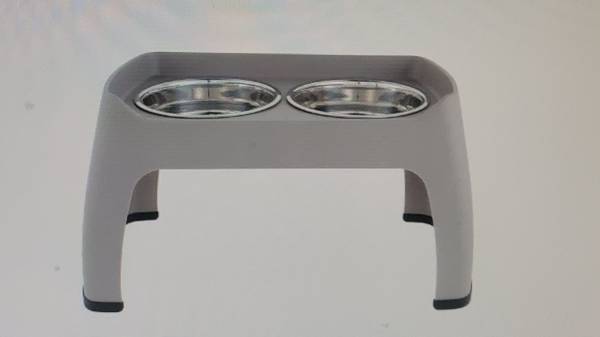 Like new. Great for medium to large dogs or Pets ... New retails for $40.00 Standard sized metal feeding bowls NOT included. Makes for clean-up EZ Can also dual as a plant holder, not pictured.