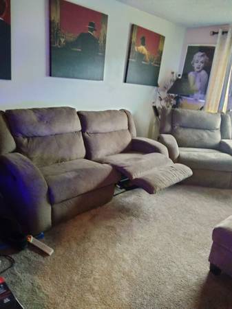 This is three recliners the sofa is a double recliner with the matching recliner and Cocoa Brown corduroy fabric very sturdy all multiples are very sturdy used but still a lot of life left in it