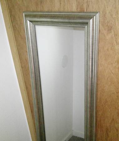 Height: 53" Length: 17" Width: 1" Condition: Very-Good. Color: Grey / Silver. Frame is made of wood. Can be used as a standing mirror or put on a wall horizontally. And click on the "more ads by...
