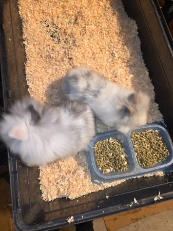 Lionhead red and white rabbits, bunny the regime for bunnies is one year, for whites three months