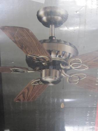 Five blade 36" Antique Brass Design A Fan Ceiling Fan, New, Unused Three speed reversible blade direction Down-rod or flush mount Made by Eagle Air