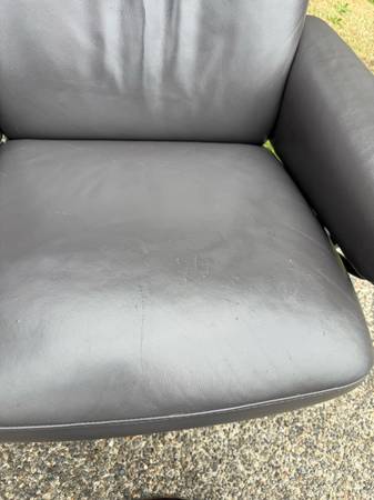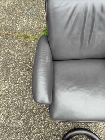 Ekornes Stressless Leather Swivel Recliner & Ottoman Small size. Has extended headrest. This chair is from cat friendly home so it has some minor scratches throughout. Please see the pictures....