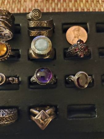 13 sterling silver signed rings 100% authentic as seen in photos some has gems in them as seen you can text or call 253-313-8O81 or email