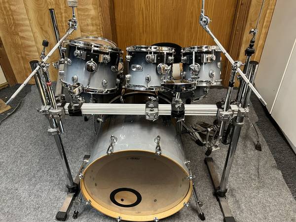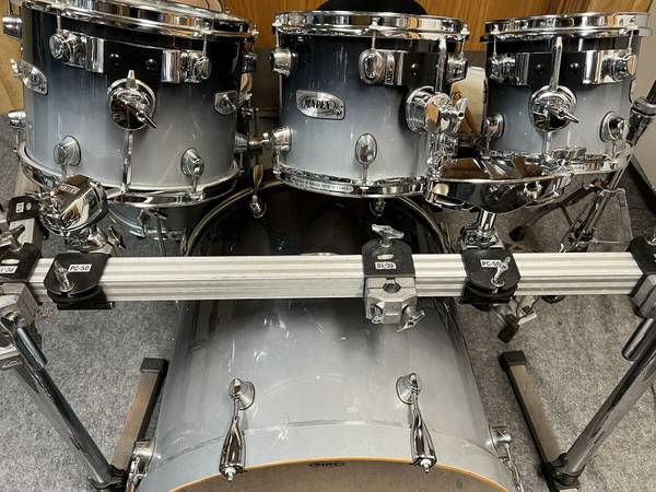 8 piece Mape Pro M drums with Pearl Icon rack and hardware. Very good condition. 22” x 20” bass drum is a cannon! Sizes: 8”, 10”, 12” toms 14” and 16” floor toms. 22” x 20” bass drum 14” x 5 1/2...
