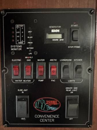 Full size master bedroom closet, 1 bathroom, Reclining seats w/ armrests, 60 Amps battery power converter, Satellite radio, CD Player, Surround sound speakers,