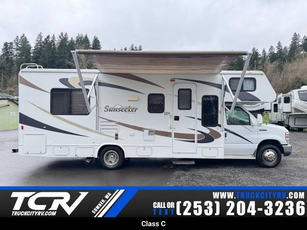 2009 Forest River Sunseeker class C 27Ft motorhome 4k Onan generator 76,000 original well kept maintain miles central ducted roof AC three burner gas stove, microwave oven three-way refrigerator fiber glass one piece roof Ford V10 Triton Rear queen bed excellent condition stored in covered indoors please call 253-750-4755. We have easy guaranteed financing available more RVs like this in stock visit www.truckcityrvsales.com to view current inventory. truckcityrvsales.com